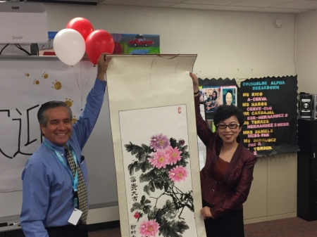 由哈师大附中张静萍书记带队的赴美访问团一行十人,于美国当地时间2017年2月14日顺利抵达圣地亚哥圣西诺高中,圣西诺高中校长Hector、校长助理及学校义工等组织了盛大而庄重的欢迎仪式。