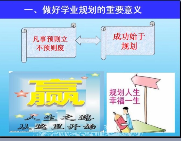 我是谁?我要到哪里去?我如何去?这是每个人都需要思考的问题。当一个人拥有这样的意识时,也就开始懂得了规划自己。“凡事预则立,不预则废”。成功始于规划。