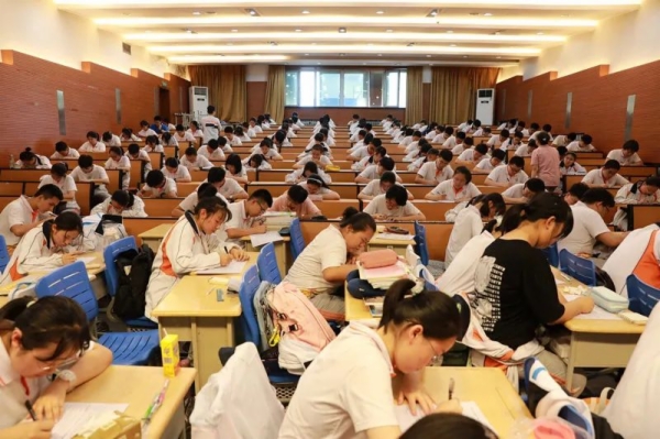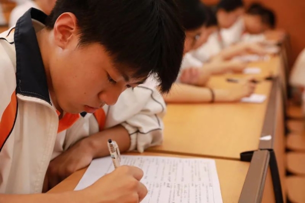 同学们态度积极主动,效果显著。因为选手既代表个人,也代表班级,大有欧阳修《礼部贡院阅进士就试》诗中的“紫案焚香暖吹轻,广庭清晓席群英”的状态。英才们济济一堂,教室虽然闷热,题量虽然较大,但没有看到选手畏怯,只感受到“无哗战士衔枚勇,下笔春蚕食叶声”的竞赛激情和专注精神。